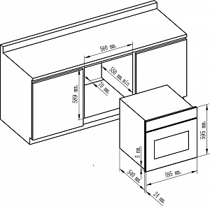 В комплекте: 1 противень, 2 решетки, Хромированные боковые направляющие, Ухват для противня